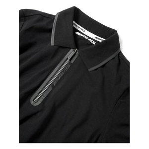 El polo negro para señora es muy cómodo de llevar. Está fabricado en algodón orgánico y elastano y, al tratarse de una prenda de manga corta, es apropiado también para el verano. Para realzar el aspecto deportivo del polo, este cuenta con una franja a rayas en los laterales, en la tira de botones y en el cuello. El diseño del polo de señora oficial de MERCEDES AMG PETRONAS MOTORSPORT de la temporada 2022 de Fórmula 1 se completa con diversos logotipos de patrocinadores y el logotipo Mercedes-Benz. - Color: negro - Material: 95 % algodón orgánico/5 % elastano - Tallas: XXS-XL - Corte entallado - Polo de señora oficial de MERCEDES AMG PETRONAS MOTORSPORT de la temporada 2022 de Fórmula 1 -Colección: Colección Mercedes-Benz Motorsport